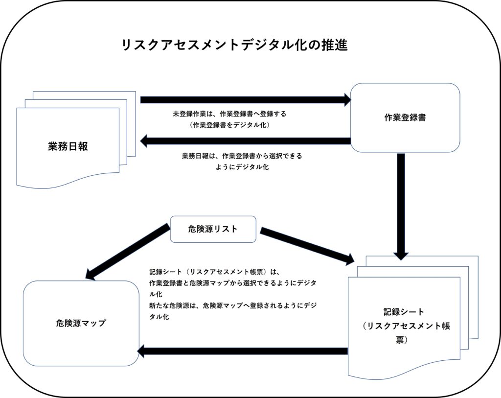 ダイナミックな変化を続ける内容に対して、業務日報、作業登録書、危険源マップ、記録シートなどが紙ベースでは、変化に追従できないばかりか、情報の共有などの視点でも適切ではありません。