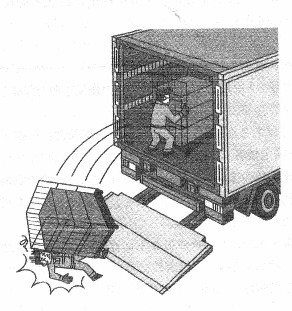 荷の配送先店舗において、被災者はテールゲートリフター車の